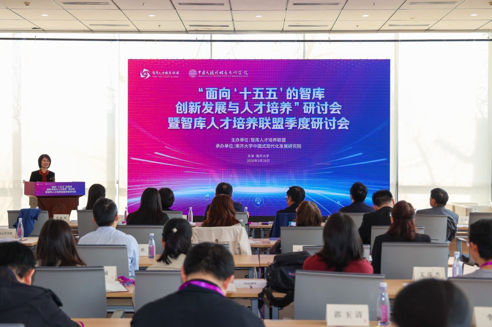3月28日,由智库人才培养联盟主办、南开大学中国式现代化发展研究院承办的“面向‘十五五’的智库创新发展与人才培养”研讨会暨智库人才培养联盟季度研讨会在南开大学八里台校区成功举办,南开大学党委副书记、中国式现代化发展研究院常务副院长梁琪,天津市社会科学界联合会副主席张再生,智库人才培养联盟执行委员会主任委员、中国科学院科技战略咨询研究院原党委书记王颖出席会议并致辞。来自高校、科研院所、党政部门、党校行政学院、企业智库的100余名专家学者参加会议,围绕中国特色新型智库建设与人才培养路径展开深入研讨。