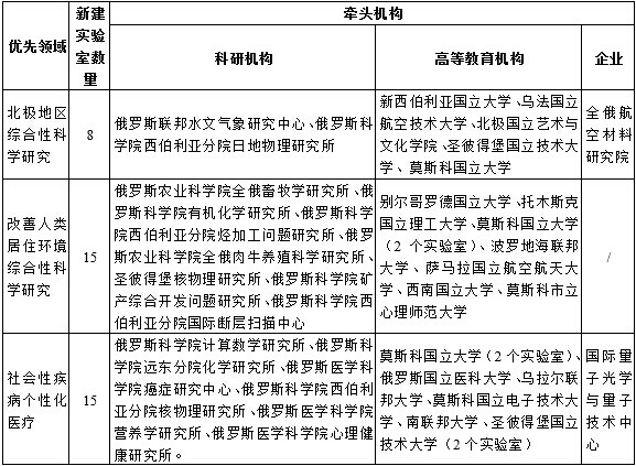 为在俄罗斯的科研和高等教育机构建立世界一流的实验室和教研室,并在特定科学领域培育一批优秀的研究团队,俄罗斯科学基金会于2014年1月启动了“新建实验室计划”,以公开竞争的方式在北极地区综合性科学研究、改善人类居住环境综合性科学研究、社会性疾病个性化医疗等优先方向开展项目招标。