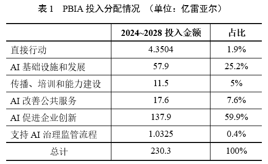 PBIA强调人工智能发展应与国家利益及维护发展权相一致,并着力应对国家面临的社会、环境和经济挑战。具体体现在五大原则中:以人为本、人人可及;应对挑战、增进福祉;立足主权、促进自主;透明负责、保障权益;全球合作、互利共赢。PBIA的核心目标是:促进巴西人工智能的发展、普及与应用,着力解决重大的国家、社会、经济、环境和文化挑战,以保障个人和集体的安全和权利,促进社会包容,保障信息完整性,保护劳动者权益,维护国家主权,推动国家经济可持续发展。为实现此目标,PBIA制定了有关计划(见表1)。
