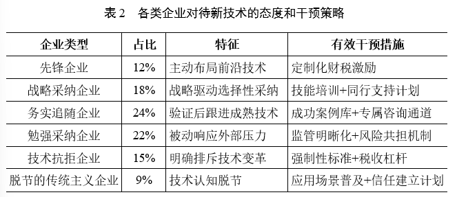 报告的研究对不同企业按其采纳技术的态度进行了分类,揭示了差异化的政策需求,详见表2。